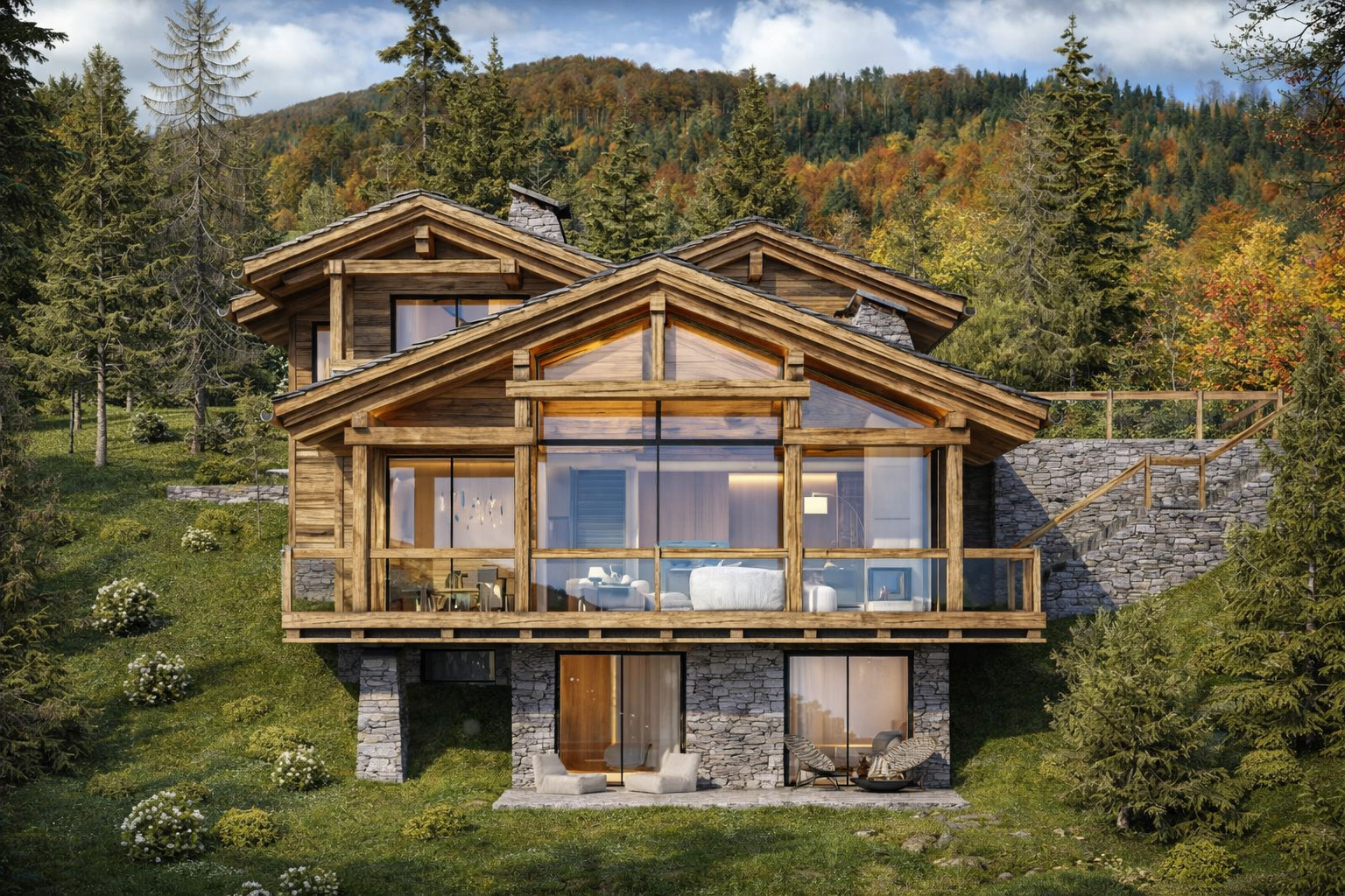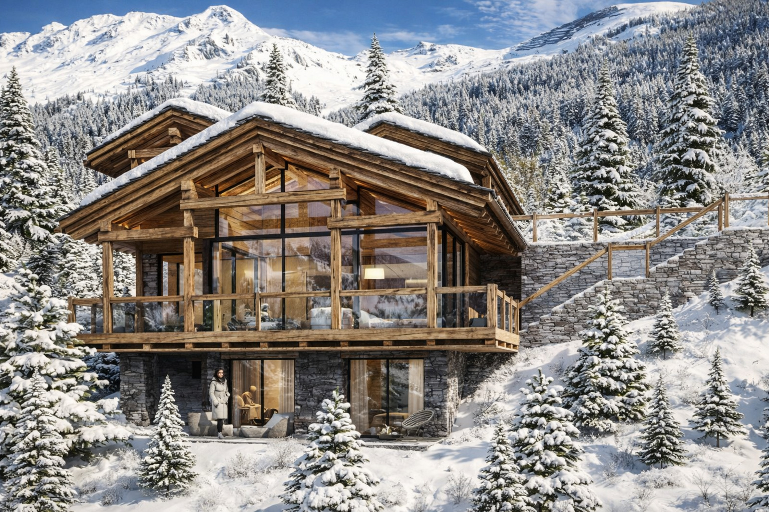 Piscine intérieure pour nager face aux sommets. Sauna où le temps n'existe plus. Home cinéma conçu comme une salle privée. Cave à vin pour vos plus belles bouteilles. Garage intérieur. Rien n'a été laissé au hasard.